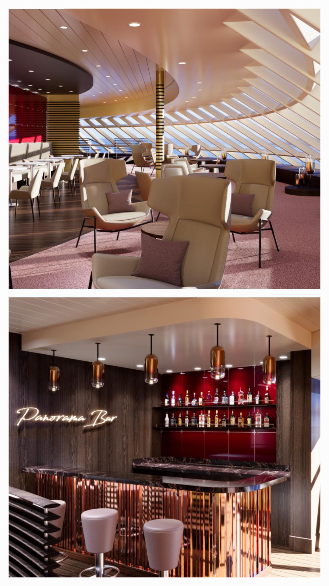 Three spaces represent the AIDA experience: the Rossini gourmet restaurant, the iconic Lanai Bar, and the unique AIDA Theatrium. Rossini offers fine dining in the evening and serves as a multifunctional day lounge for suite guests. The Lanai Bar, situated neares to the ocean, is a place to chill out, dine, or party. These spaces are not just places to eat or drink—they are multifunctional, immersive brand experiences, thoughtfully curated to inspire and engage. The AIDA Theatrium, with its striking color schemes and living room atmosphere, becomes a hub of social interaction, with themed entertainment on stage transporting guests into the world of AIDA.